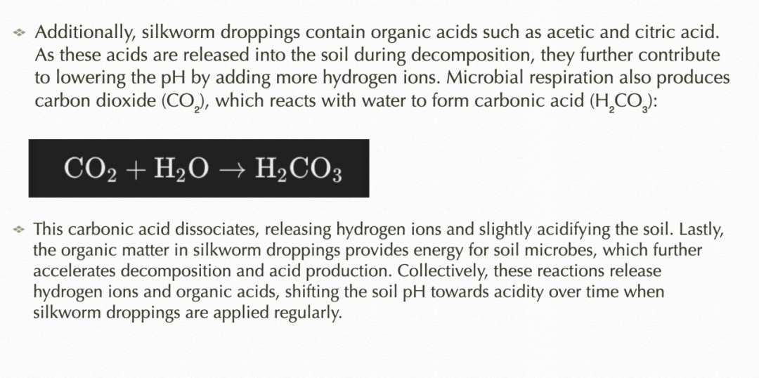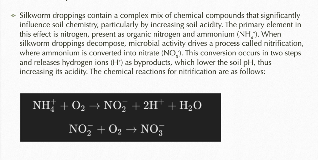 理論支持:蠶糞中的氮元素通過硝化作用降低土壤pH,增加土壤酸性。