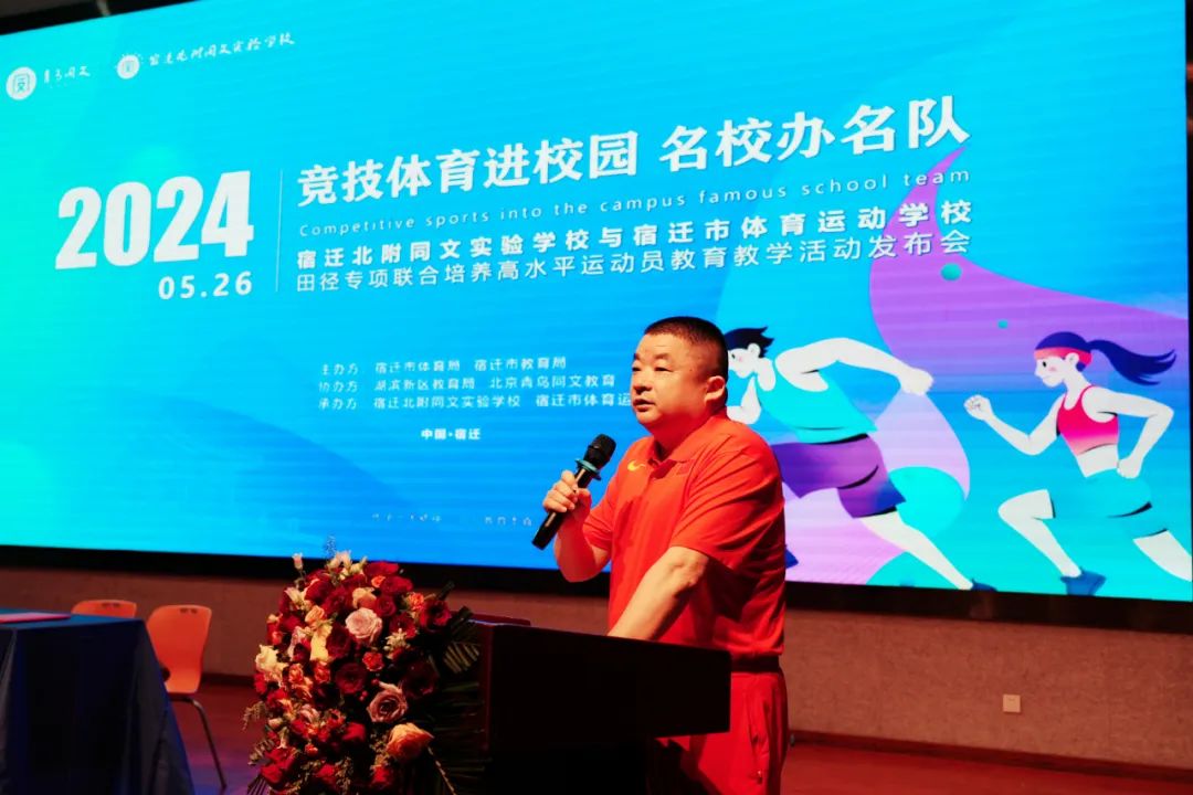 為進(jìn)一步推進(jìn)體教融合工作,加快宿遷市優(yōu)秀體育后備人才的培養(yǎng),有效推動“體教融合 名校育名隊(duì)”項(xiàng)目。5月26日,宿遷北附同文實(shí)驗(yàn)學(xué)校與宿遷市體育運(yùn)動學(xué)校隆重舉行田徑專項(xiàng)聯(lián)合培養(yǎng)高水平運(yùn)動員教育教學(xué)活動發(fā)布會?;顒佑晌倚=處煱l(fā)展處葛旋主任主持。